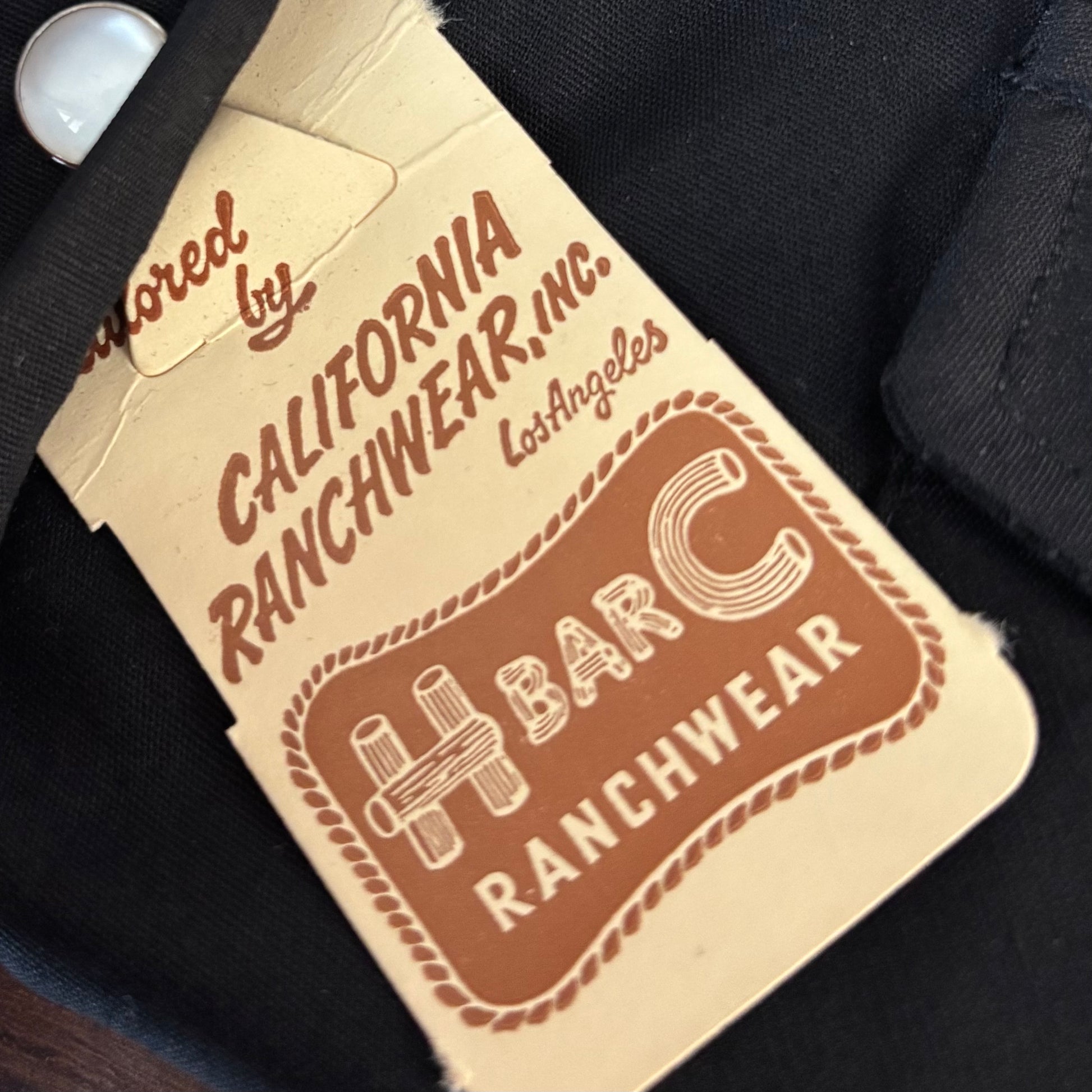 Vintage H Bar C California Ranchwear western snap shirt, new old stock with original tag still attached. Classic mid-century ranchwear style with pearl snaps, western yoke, and crisp cotton fabric. A true collector piece from one of the most iconic western wear brands ever made.