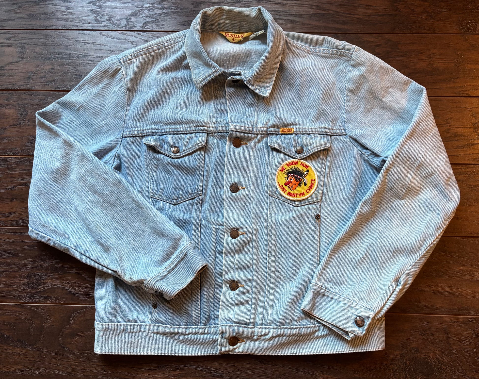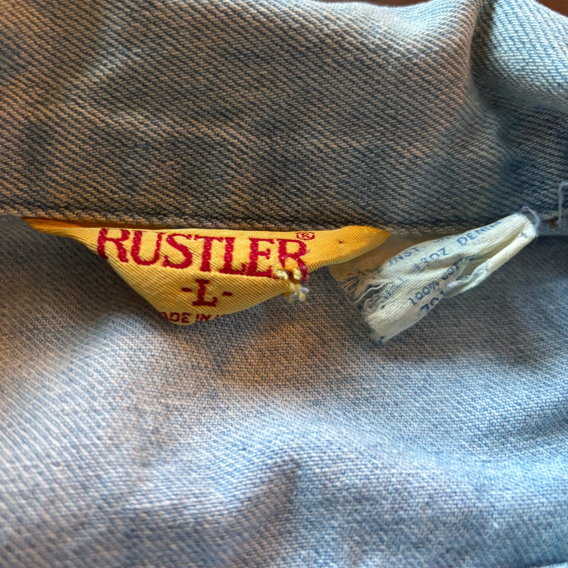 Vintage Western Rustler Denim Trucker Jacket with Vintage Patch | Made in USA